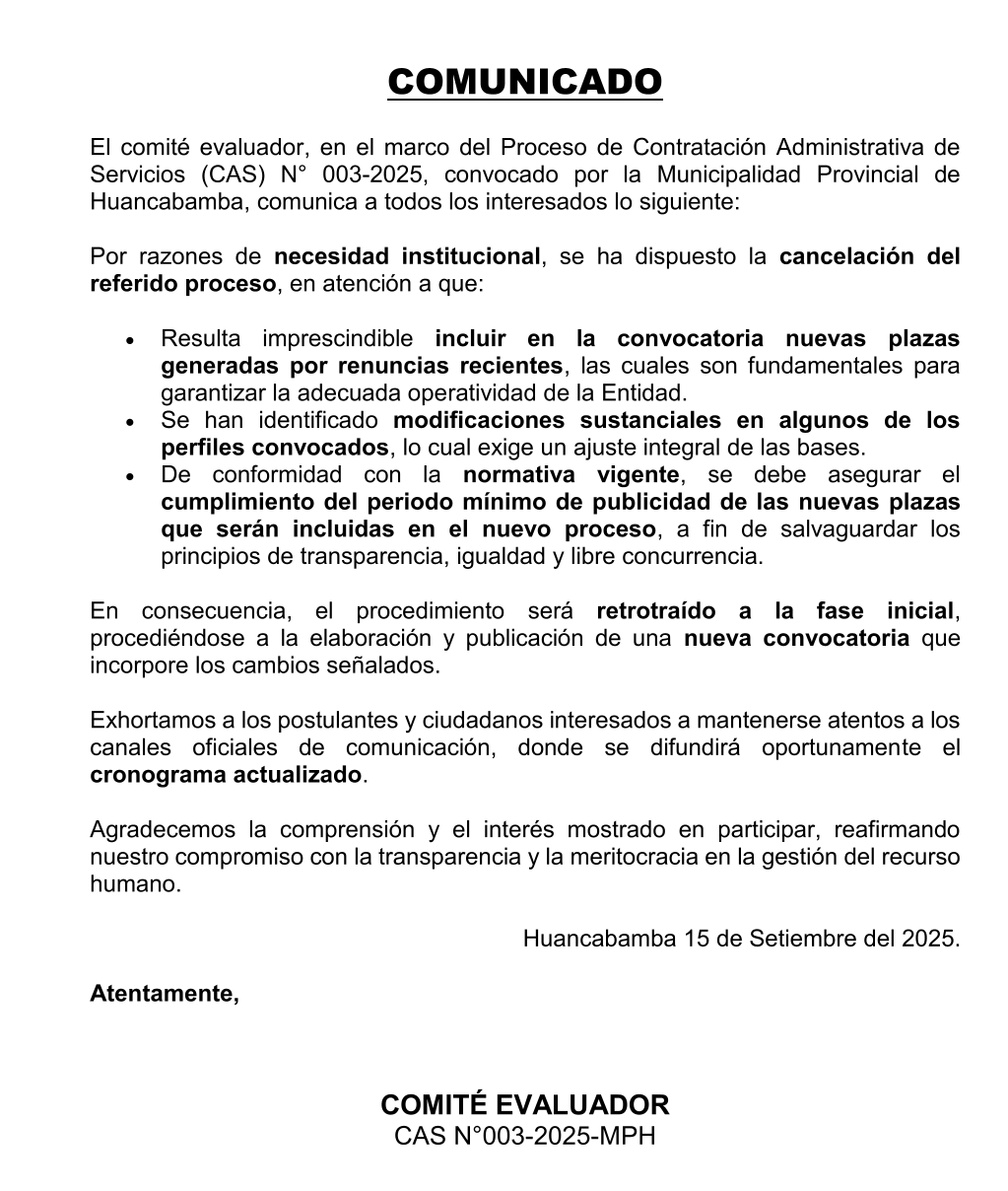 CONVOCATORIA CAS N° 003 - 2025 ¡Proceso actualizado!