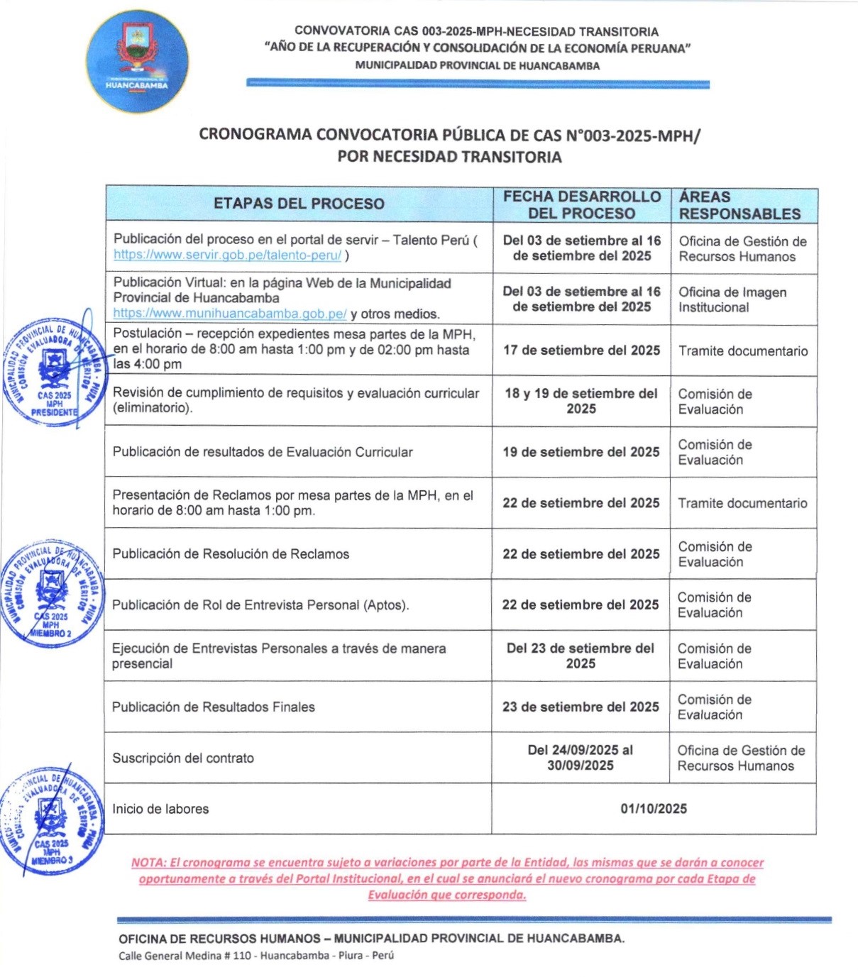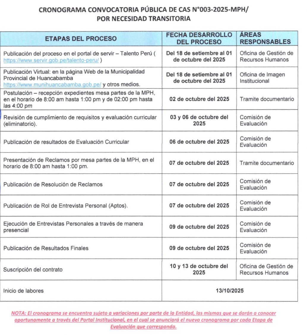 BASES DEL PROCESO CAS N° 003-2025-CAS-MPH/NECESIDAD TRANSITORIA