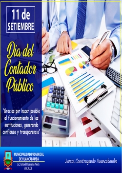 Viernes, 11 Septiembre 2020 15:42El Alcalde Lic. Ismael Huayama y Regidores de la Municipalidad Provincial de Huancabamba saludan a los profesionales huancabambinos que se dedican a la contaduría pública. Asimismo a quienes ejercen esta labor en las diversas instituciones públicas y privadas a nivel de la jurisdicción provincial, contribuyendo al desarrollo de Huancabamba.
